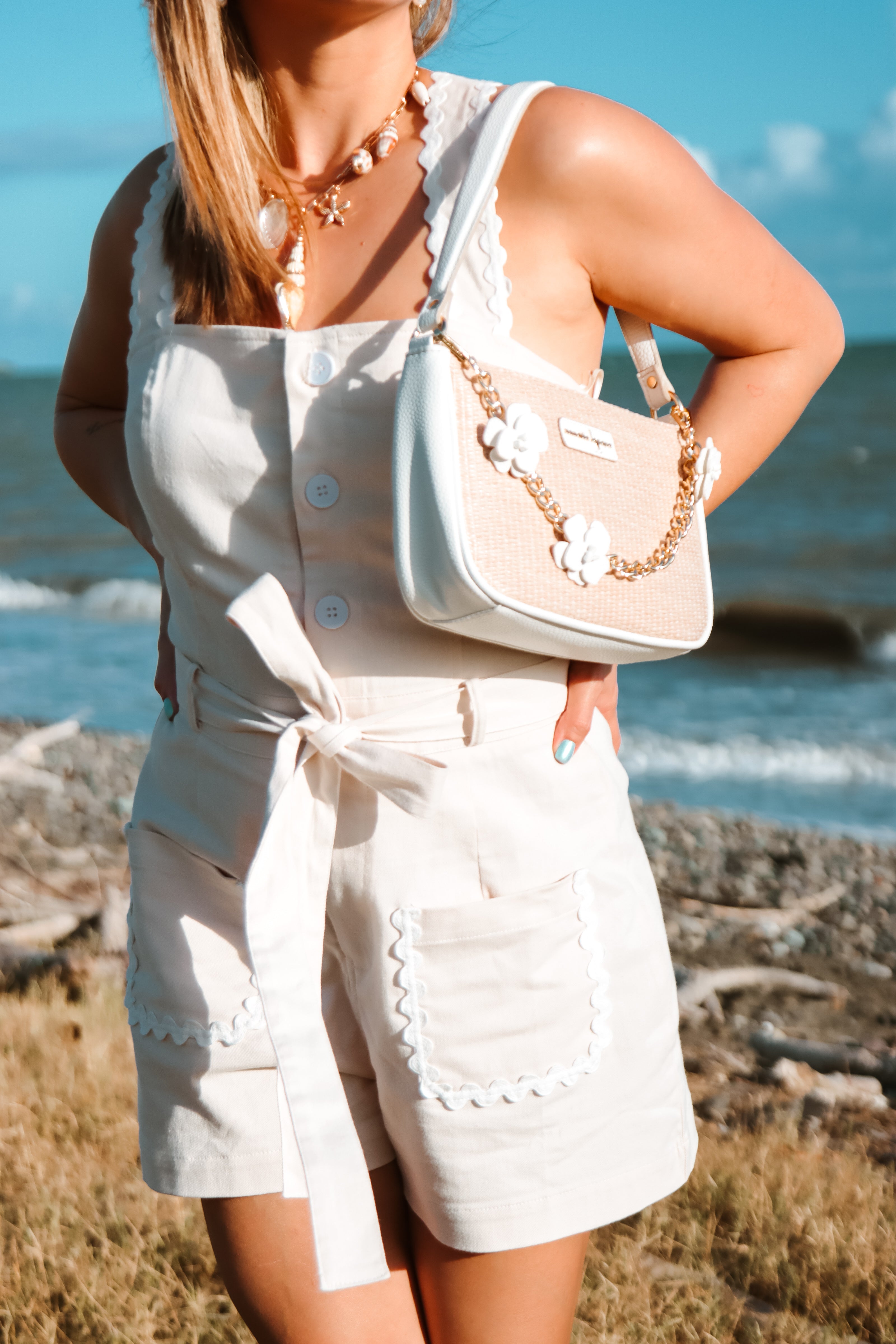 Sweet, stylish, and effortlessly chic—the Ric Rac Trimmed Button Down Romper is your warm-weather essential with a nostalgic twist. Crafted from a lightweight, breathable fabric, this romper features classic button-down styling accented with whimsical ric rac trim for a touch of retro charm.